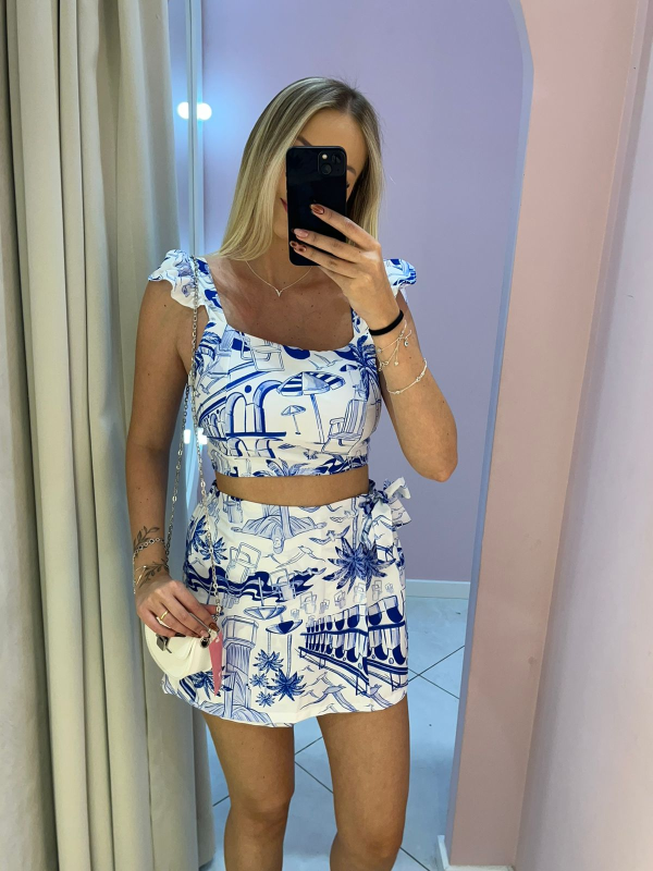 Conjunto Montaria Short Saia + Cropped Tomara que Caia