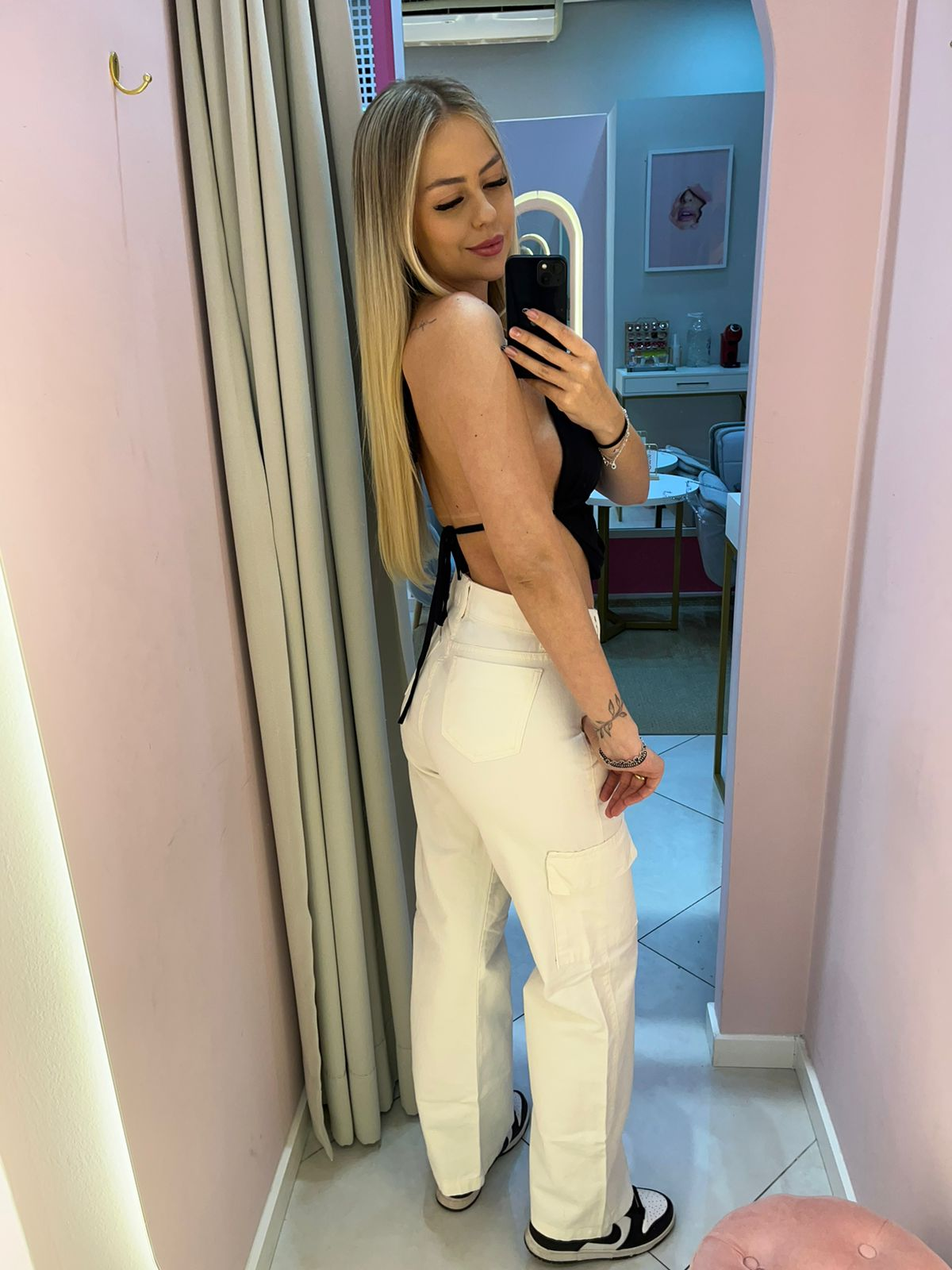 A Wide Leg Cargo Branca Premium é perfeita para quem busca um look moderno, versátil e cheio de atitude. Sua modelagem wide leg garante caimento elegante e confortável, enquanto o design cargo adiciona estilo urbano e funcionalidade com bolsos práticos.