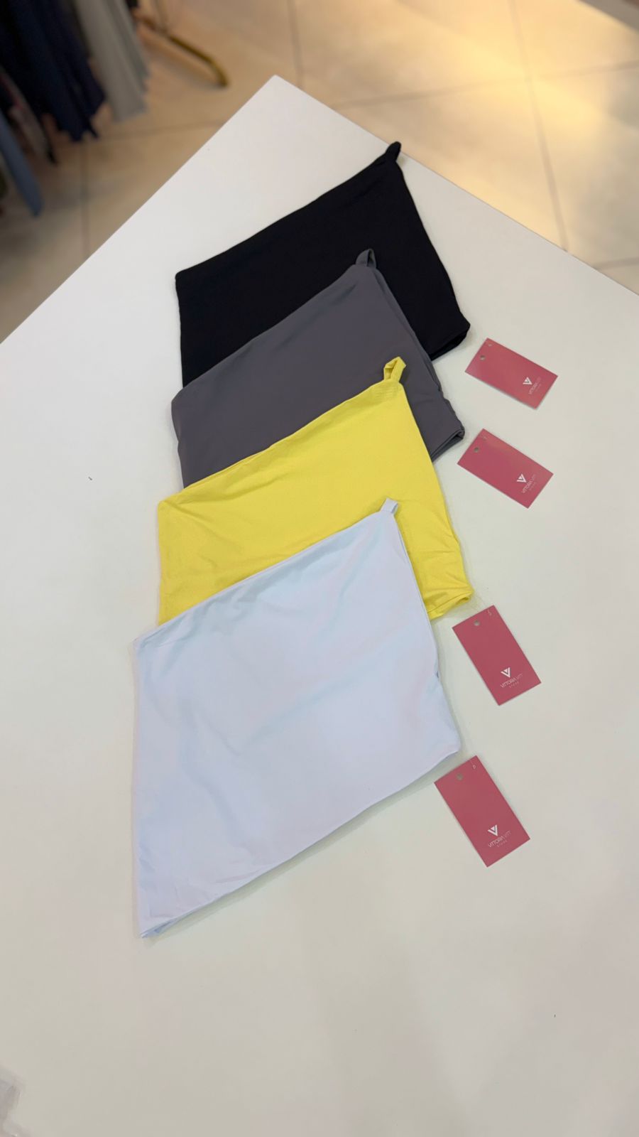 Valoriza o colo e traz feminilidade, enquanto a modelagem cropped proporciona um visual atual e versátil. Ideal para compor desde looks casuais até produções mais sofisticadas, o Cropped Assimétrico Ombro só Poliamida combina facilmente com calças wide leg, saias midi, shorts e até peças de alfaiataria.