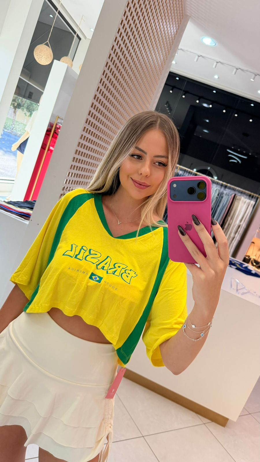 A Cropped T-shirt Brasil é a escolha perfeita para quem quer mostrar seu orgulho pelo país com muito estilo e atitude. Feita com tecido de alta qualidade, possui um caimento perfeito e é super confortável. Ideal para combinar com shorts, saias ou calças jeans, é uma peça versátil que pode ser usada em diversas ocasiões, desde festas até passeios no parque. Além disso, seu design exclusivo e estiloso vai garantir que você se destaque onde quer que vá. A Cropped T-shirt Brasil é mais do que uma simples peça de roupa, é um verdadeiro statement de estilo e patriotismo. Garanta já a sua!