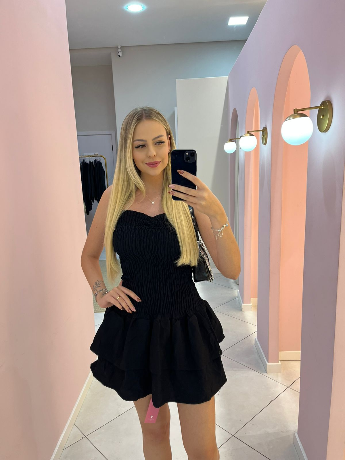 O Vestido Babado Curto é a peça chave para um visual cheio de charme e feminilidade. Confeccionado em tecido leve e confortável, possui babados na barra que dão um toque de movimento e delicadeza. Ideal para festas, eventos casuais ou até mesmo para o dia a dia. Além disso, seu comprimento curto valoriza as pernas e deixa o look mais moderno e despojado. Disponível em diversas cores e tamanhos, é um item versátil que não pode faltar no seu guarda-roupa.