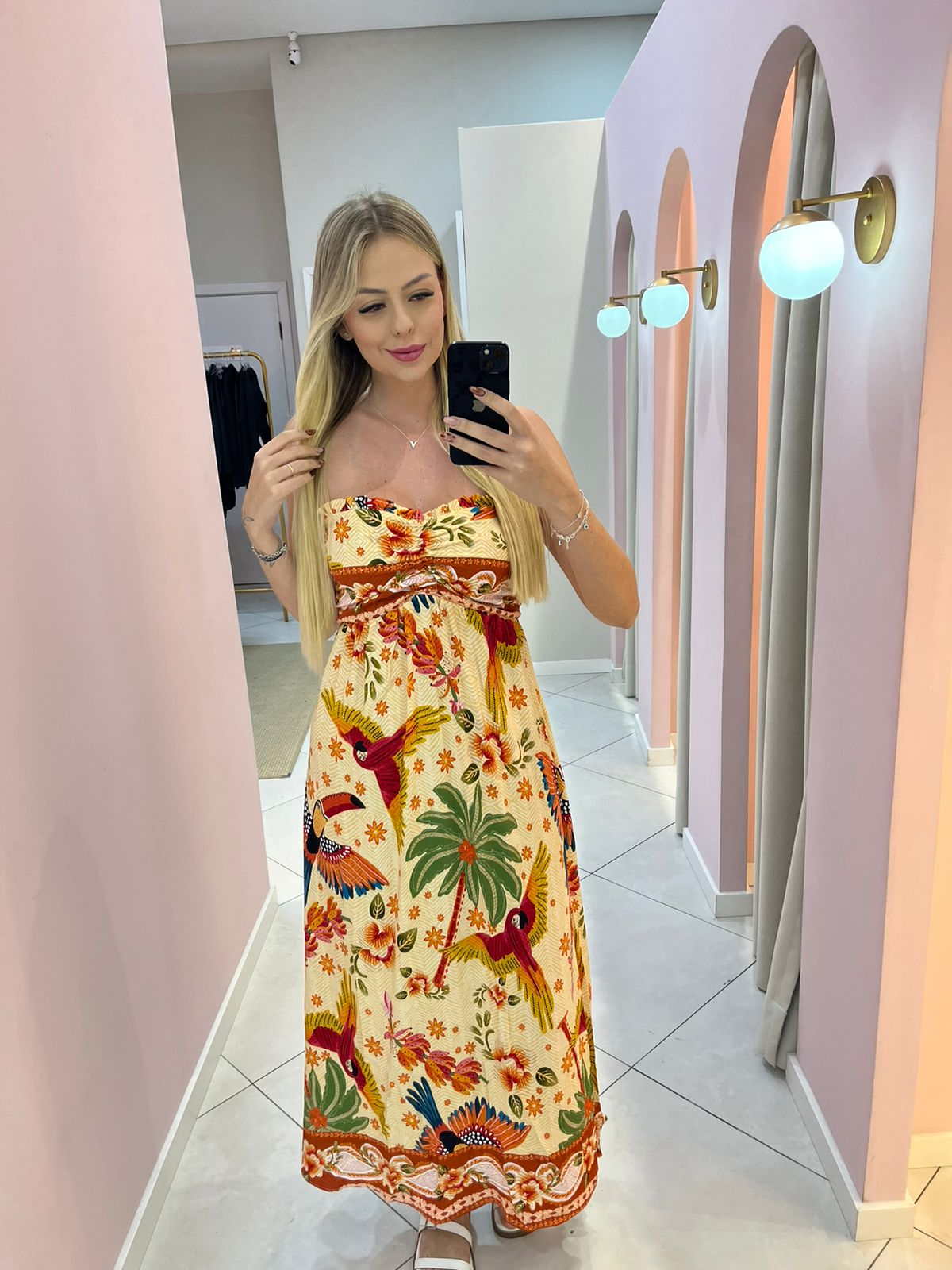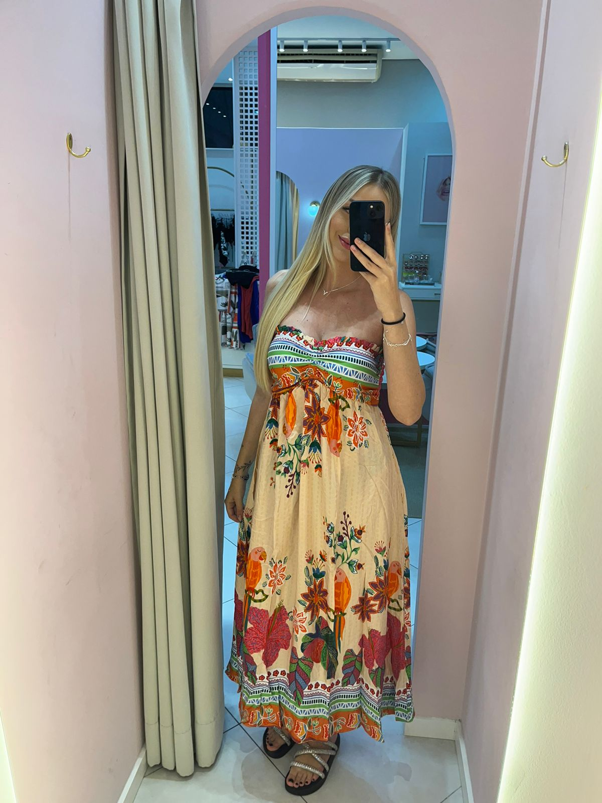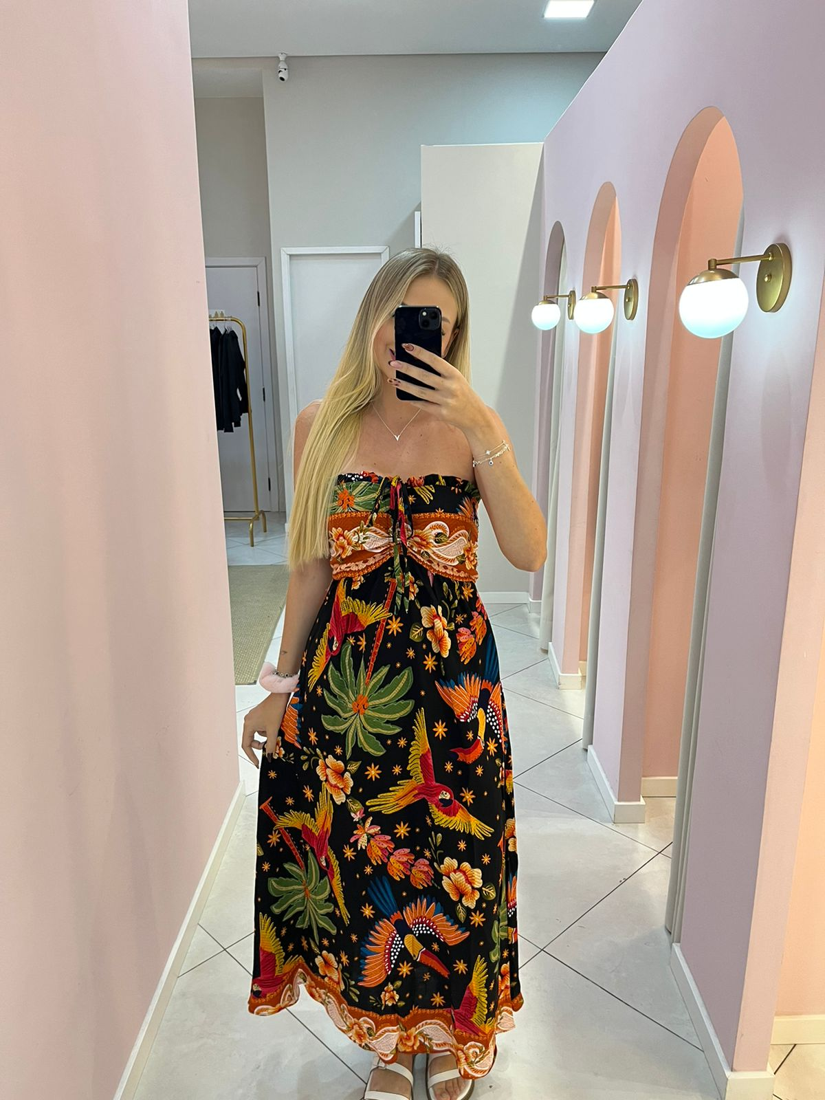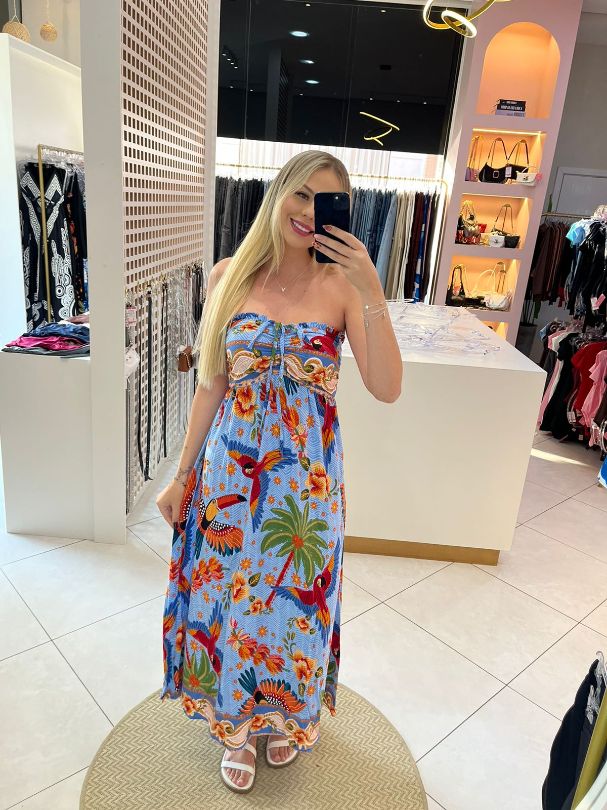 O Vestido Inspiração Farm Copacabana traz toda a essência vibrante e descontraída da moda carioca. Inspirado no lifestyle tropical da marca Farm, ele combina estampa exclusiva, caimento leve e modelagem fluida, resultando em uma peça perfeita para quem ama estilo e conforto.