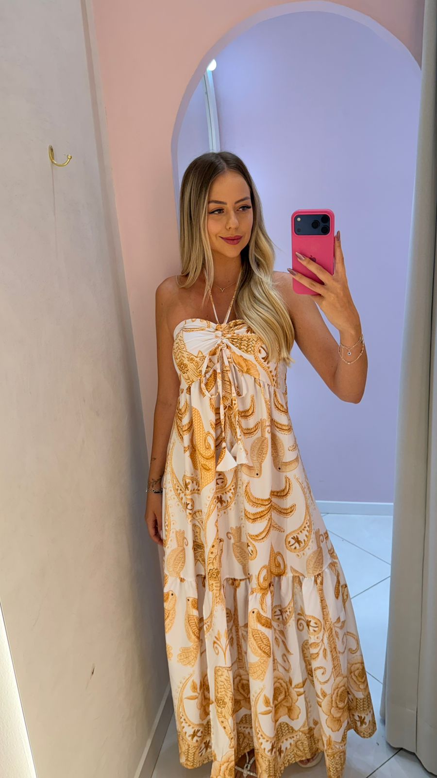 O Vestido Flora é a escolha ideal para quem busca um look feminino e elegante. Com sua estampa floral em tons suaves, ele é perfeito para eventos durante o dia ou à noite. Sua modelagem ajustada na cintura valoriza a silhueta, enquanto o tecido leve e confortável garante liberdade de movimento. Além disso, o decote em V e as alças finas adicionam um toque de sensualidade na medida certa. Seja para um passeio no parque ou para uma festa especial, o Vestido Flora é a opção certa para quem busca sofisticação e estilo.